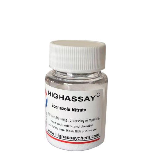 Highassay provides high-purity, high-quality Econazole Nitrate raw materials. Our Econazole Nitrate raw materials are white or slightly yellow crystalline or crystalline powder, odorless, and readily soluble in methanol but practically insoluble in water. As an antifungal raw material, it exhibits activity against dermatophytes, yeasts and is effective against Gram-positive bacteria. Highassay’s raw materials not only meet GMP standards but also comply with the standards of multiple pharmacopoeias, such as CP, BP, USP, and EP. Choosing our products as your production raw materials will undoubtedly enhance the quality of your products and ensure their widespread popularity.